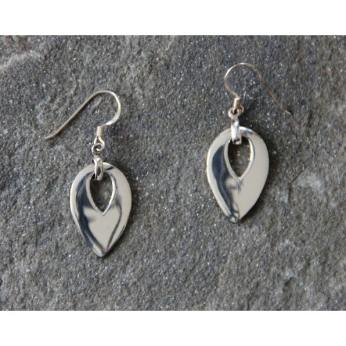 A medium weight up-turned pear shaped sterling silver earrings. Contemporary and elegant design.